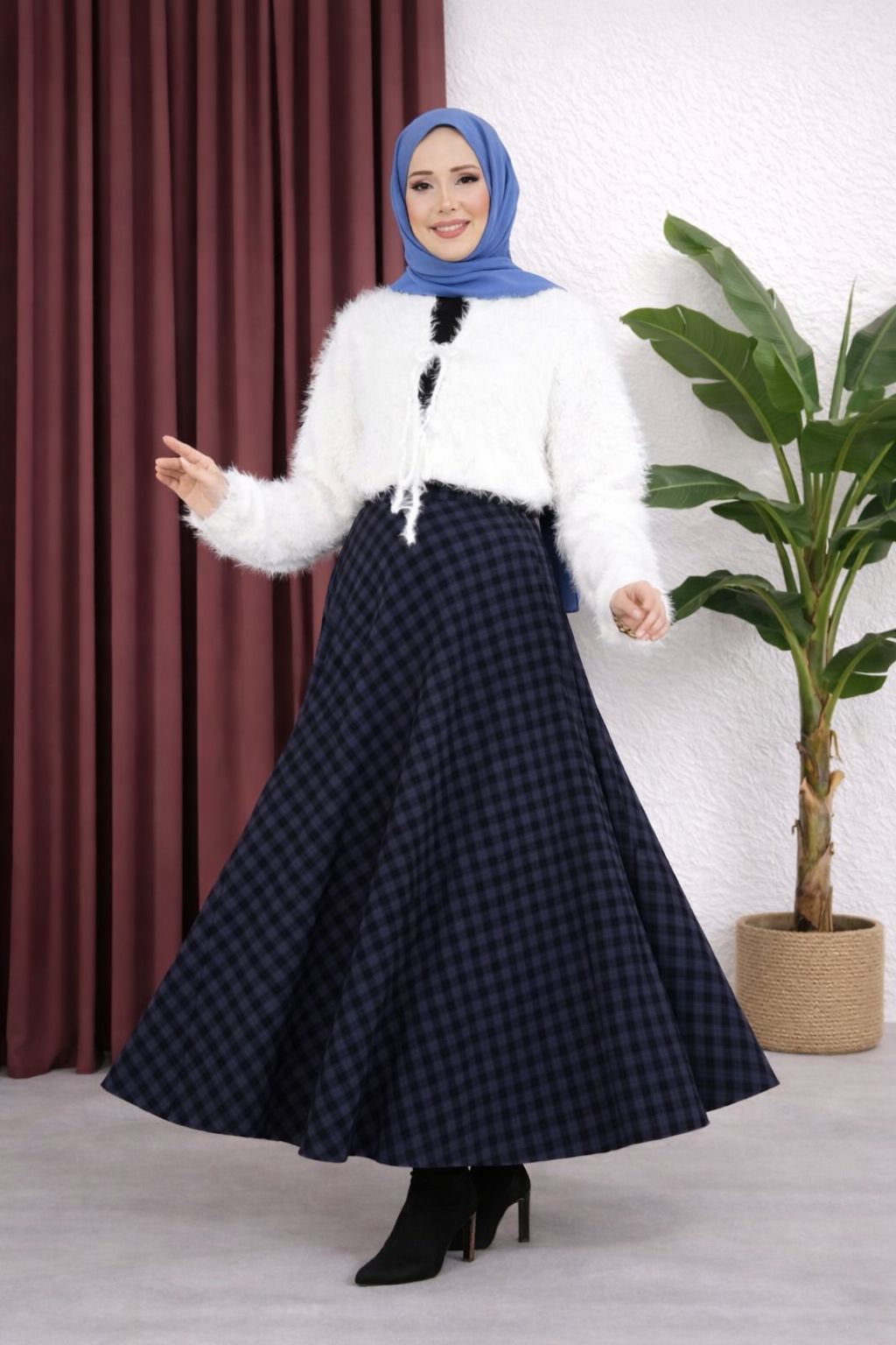 Şıklığı ve konforu bir araya getiren Klasik Pötikare Desen Etek, modern kesimi ile dolabınızın favori parçalarından biri olmaya aday. Günlük kombinlerden özel davetlere kadar geniş bir kullanım alanı sunan bu etek, zamansız pötikare deseni ve verev kesimiyle tarzınızı tamamlar.